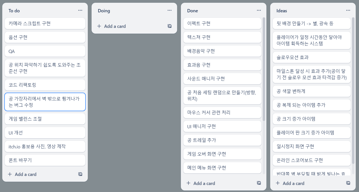 위와 비슷한 과정으로 공, 공의 트레일, 플레이어에도 각 스타일에 맞는 Material을 입혔습니다.