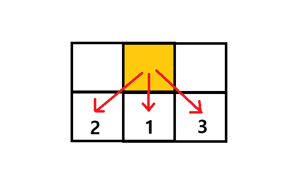 // 차례대로 1. 바로 아래, 2. 아래 왼쪽, 3. 아래 오른쪽.