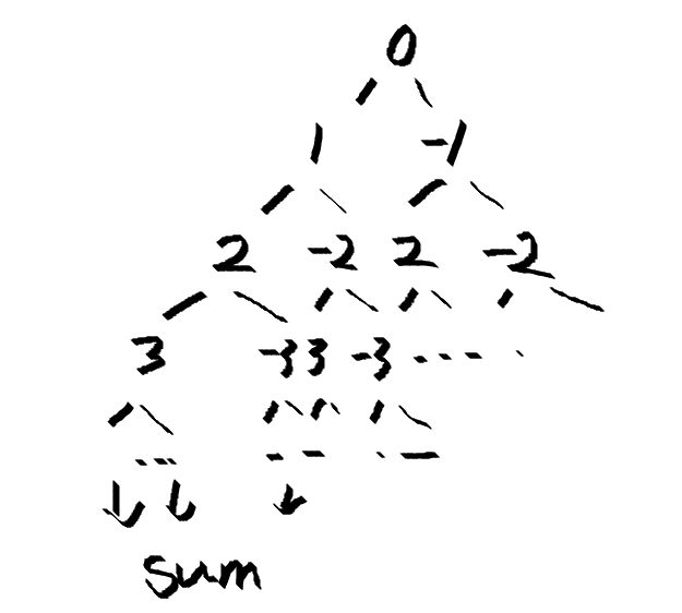 와 같이 각 element에 1 또는 -1을 곱해줄 벡터들을 만들고, 실제로 곱해줘서 합산하여 target과 같은 경우 카운팅을 하는 방법을 연상했습니다.