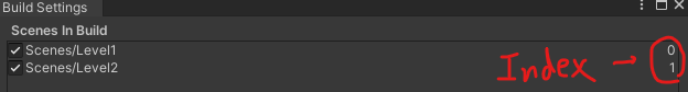 LoadNextLevel 함수는 빌드 세팅 상 다음 index의 scene을 로드할 수 있도록 해줍니다.